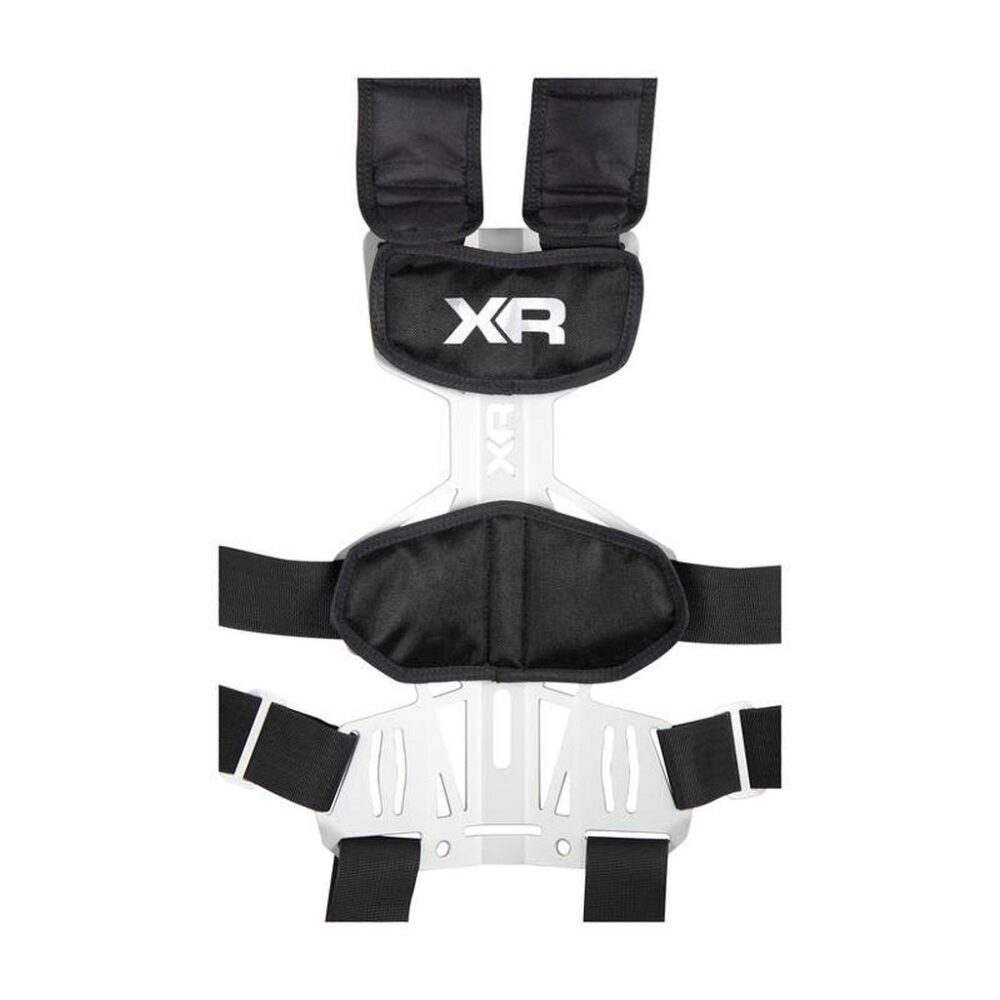 - An adjustable crotch strap with 2 back plate attachments for improved comfort and stability